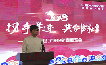 在熱烈的掌聲中,揚子凈化董事長、總經(jīng)理楊勇發(fā)表了熱情洋溢的新春致辭。楊總代表公司全體股東、領(lǐng)導(dǎo)班子和他的家人,并以他個人名義向揚子凈化全體同事致以新春的祝福。接著,楊總用數(shù)字和增長幅度全面總結(jié)了2017年公司各條戰(zhàn)線的工作成就,并對2018年的工作作出全面部署,向全體員工發(fā)出了繼續(xù)奮斗的動員令。