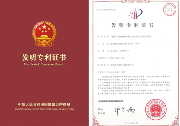 近日,由江蘇揚子凈化工程有限公司企業技術中心楊雪璁副總團隊發明的《一種基于傳感器網絡的潔凈車間運行方法及系統》科研成果順利通過國家發明專利審核,成功獲得發明專利授權。由錢俊勇團隊發明的《角件連接的鋁合金雙層玻璃潔凈窗》科研成果;周志權團隊發明的《潔凈車間用防漏風門》科研成果;張石華團隊發明的《凈化門用嵌入式密封條安裝結構》科研成果;蔡平團隊發明的《一種密封型門框結構》科研成果獲得實用新型專利授權。
